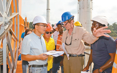 由中企承建的喀麦隆曼维莱水电站主体部分今年2月通过喀方临时验收委员会验收。该项目位于喀麦隆南部大区,总投资6.37亿美元,总装机容量211兆瓦。图为监理团队和喀方业主成...