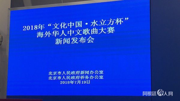 (阿根廷华人网7月19日讯)2018年7月19日,北京市人民政府新闻办公室联合北京市人民政府侨务办公室召开2018年“文化中国·水立方杯”海外华人中文歌曲大赛新闻发布会。北京市人民政府侨务办公室副主任、新闻发言人史立臣出席发布会介绍有关情况,并回答记者提问。
