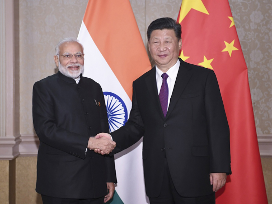 3个月内,中国国家主席习近平分别在中国武汉、中国青岛和南非约翰内斯堡与印度总理莫迪举行了会晤。