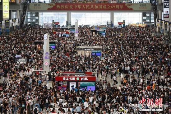 中新网10月5日电记者从中国铁路总公司获悉,10月5日,全国铁路客流继续保持高位运行,预计发送旅客1315万人次,国庆假期铁路旅客累计发送人数将突破1亿人次