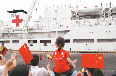 近日,执行“和谐使命-2018”任务的中国海军和平方舟医院船抵达瓜亚基尔港,对厄瓜多尔进行为期8天的友好访问。厄方举行了隆重的欢迎仪式。中国驻厄大使王玉林率使馆工作人员、华...