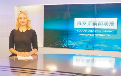 克谢尼娅在演播室播报新闻。资料图片“各位观众大家好!欢迎您收看《俄罗斯新闻联播》节目……”片头过后,略带一点东北口音的流利普通话响起。画面中的主播却是位满头金发的俄罗斯姑娘...