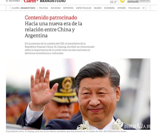2018年11月28日,在出席二十国集团领导人布宜诺斯艾利斯峰会并对阿根廷共和国进行国事访问前夕,国家主席习近平在阿根廷《号角报》发表题为《开创中阿关系新时代》的署名文章。文章如下: