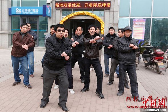 资料图片:2013年1月21日下午,在武汉东西湖区七雄路星光大道音乐会所门前,一群农民工跳起了江南Style骑马舞,引来不少路人围观。记者了解得知,年关将至,40多位农民工因为没拿到工钱,被逼无奈才“出此下策”。(图片转自中新网)