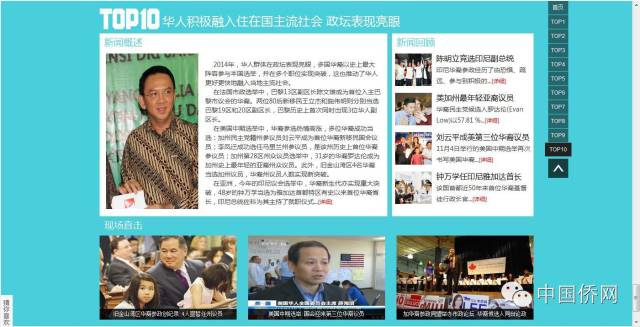 2014年,华人群体在政坛表现亮眼,多国华裔以史上最大阵容参与本国选举,并在多个职位实现突破,这也推动了华人更好更快地融入当地主流社会。