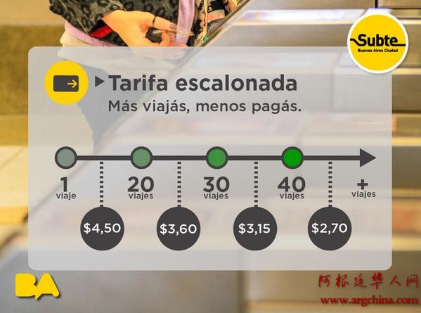阿根廷交通SUBE卡,越用越便宜 阿根廷新闻 • 2014-11-19 15:11• 收藏本文 转载本网稿件,原则上需要书面授权,不得篡改稿件主题。本网随时有权要求第三方停止侵权行为。 本网所载内容或图片,若涉及侵权,请联系删除。 19 ___________ 2014/11 阿根廷交通SUBE卡,越用越便宜 阿根廷华人网19日讯(记者Lucas) 自从阿根廷首都布宜诺斯艾利斯推出SUBE和Monedero两种交通卡之后,极大地方便了普通市民的出行。 使用SUBE和Mone... [ 微信长按识别二维码或扫码查看分享内容 ]