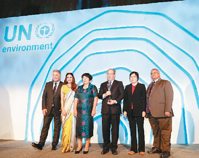在第三届联合国环境大会上,因为在库布其沙漠治理中付出了诸多努力,亿利集团董事长王文彪被授予“地球卫士终身成就奖”。
