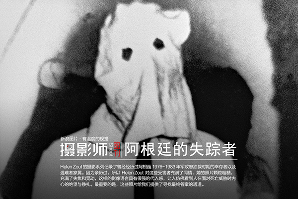 Helen Zout(海伦·左特)的摄影系列《失踪者》记录了曾经经历过阿根廷 1976~1983 年军政府独裁时期的幸存者以及遇难者家属,那段时间共有 30,000 多人因为种种原因“人间蒸发”。Helen Zout 作为幸存者毅然决定用摄影的方式去揭露那段黑暗的历史。