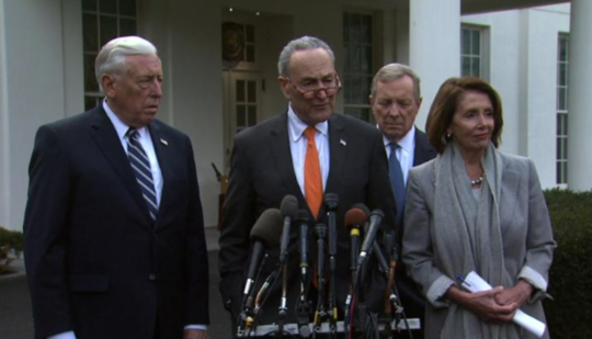 民主党领袖舒默则告诉白宫等候在外的记者,形容特朗普当时在白宫军情室里的举动“有点像拍桌子走人”。