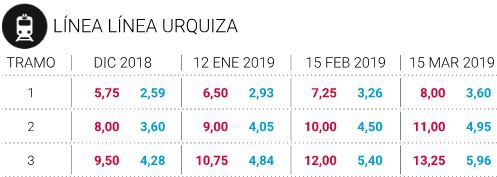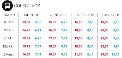 截止至目前,这些线路的最低票价均为5.50比索;明天(一月12日)起将涨至6.25比索;二月15日起将涨至7比索;最终在三月涨至7.75比索。