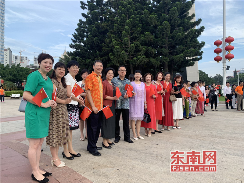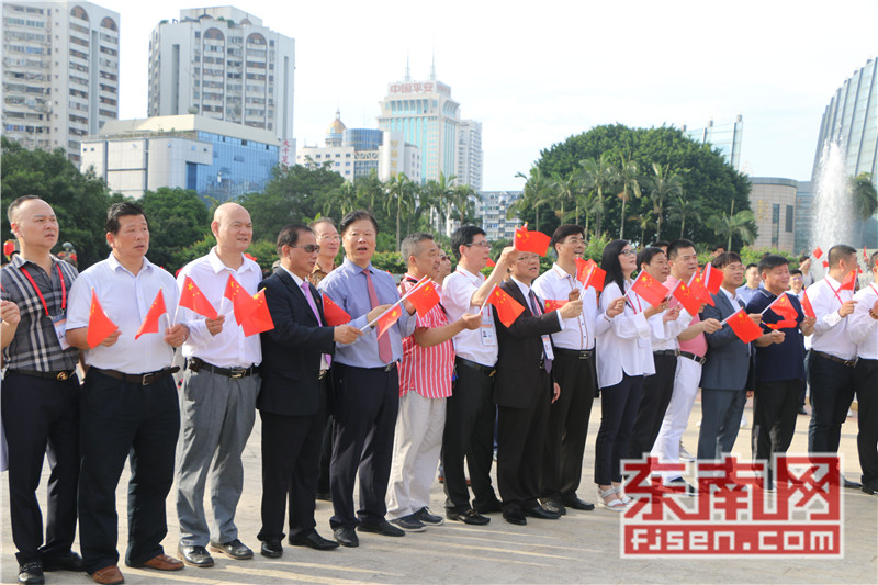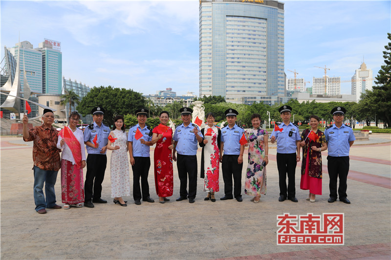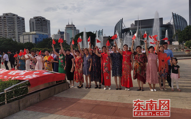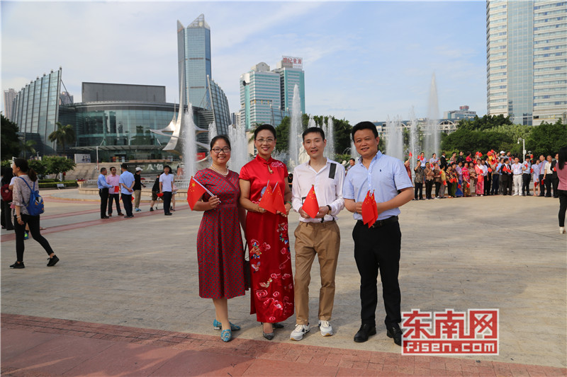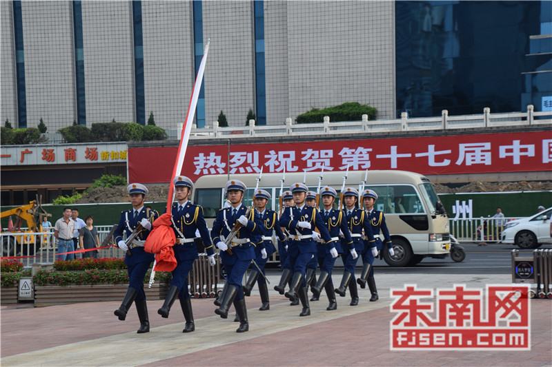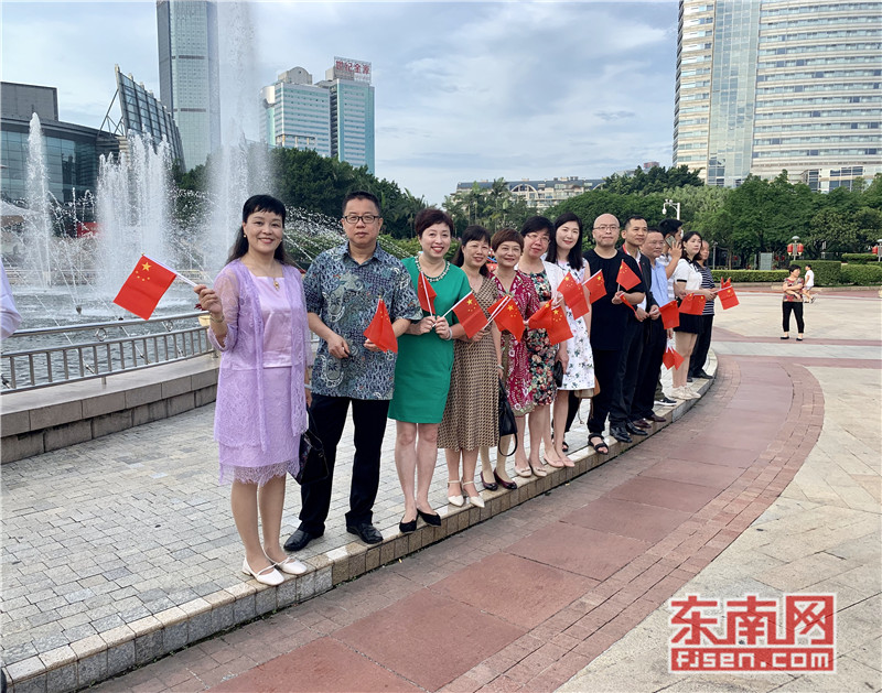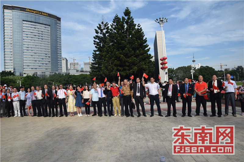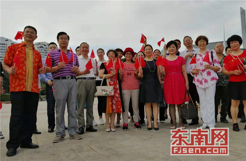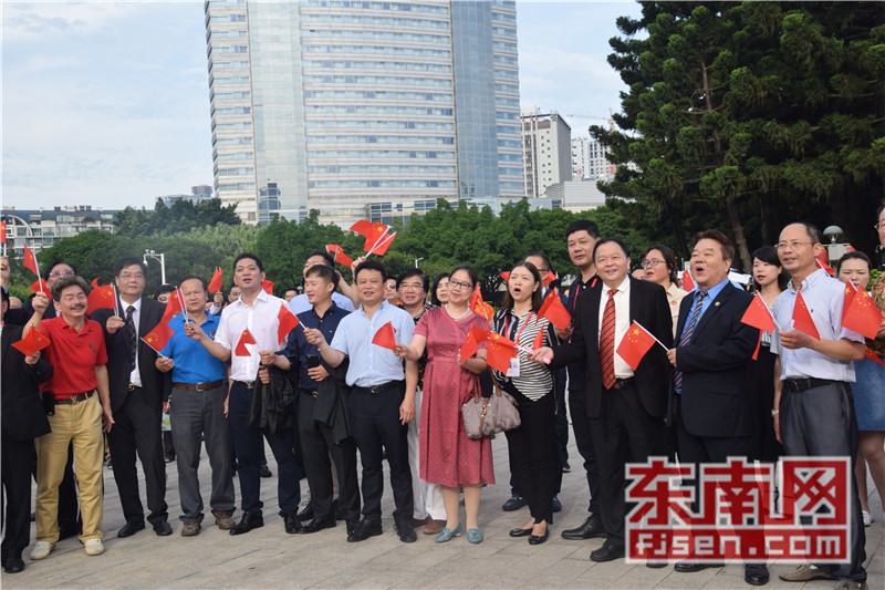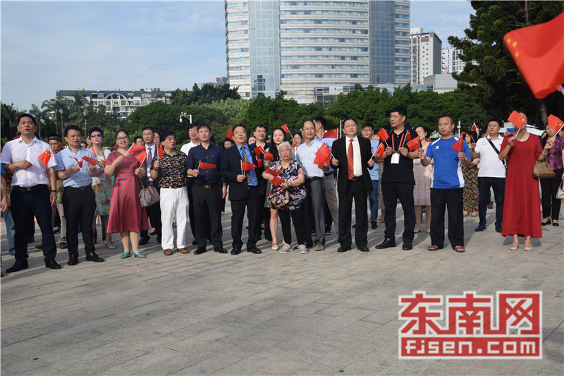 东南网6月19日讯(本网记者夏芳 陈倩 实习记者余雪林 文/图)每天清晨,福州市国旗护卫队都会护送国旗到五一广场国旗杆下,迎着第一缕阳光,伴随着国歌,将五星红旗冉冉升起。今日,来自全球5大洲70多个国家的海外侨胞、港澳同胞、归侨侨眷及现场市民近600人参加了这场肃穆庄严的奏国歌、升国旗仪式,并且在五一广场开展了一场别开生面的公益快闪活动。