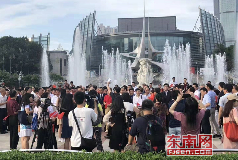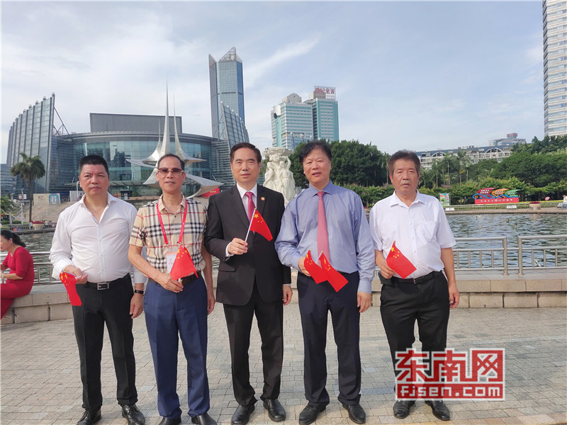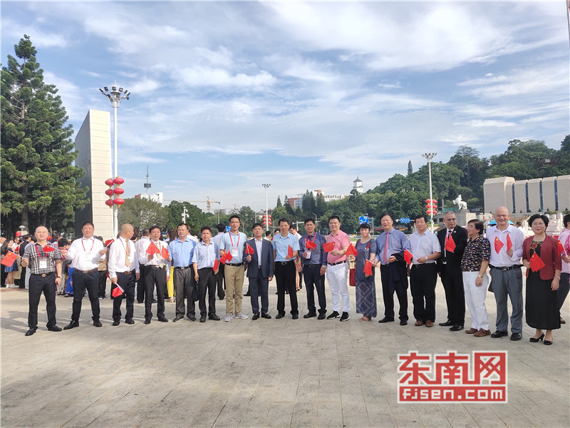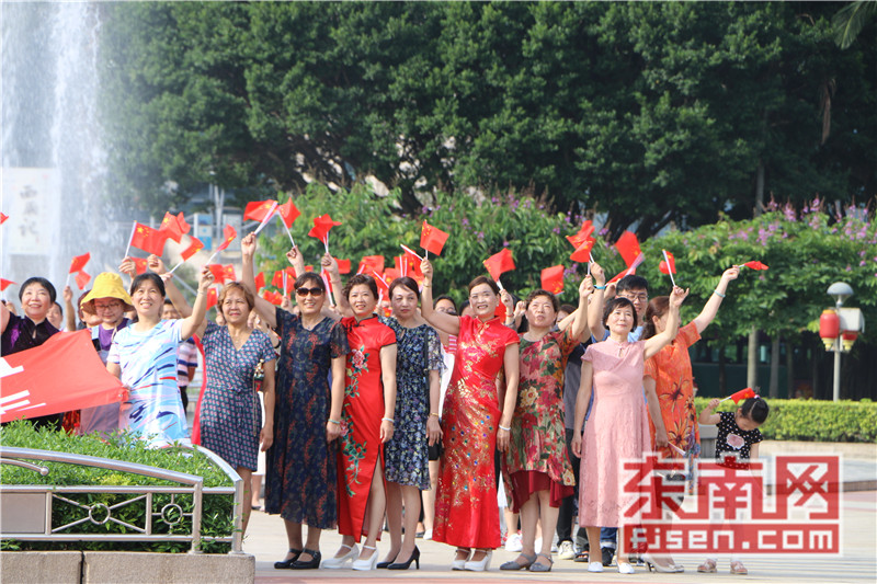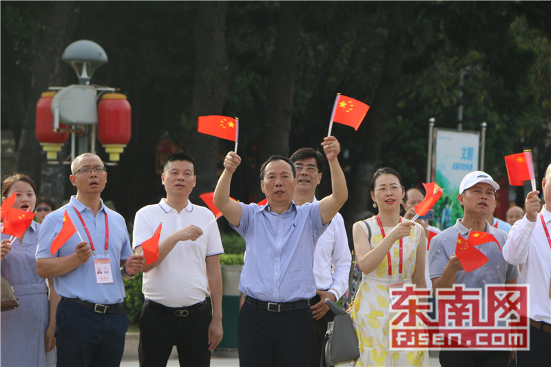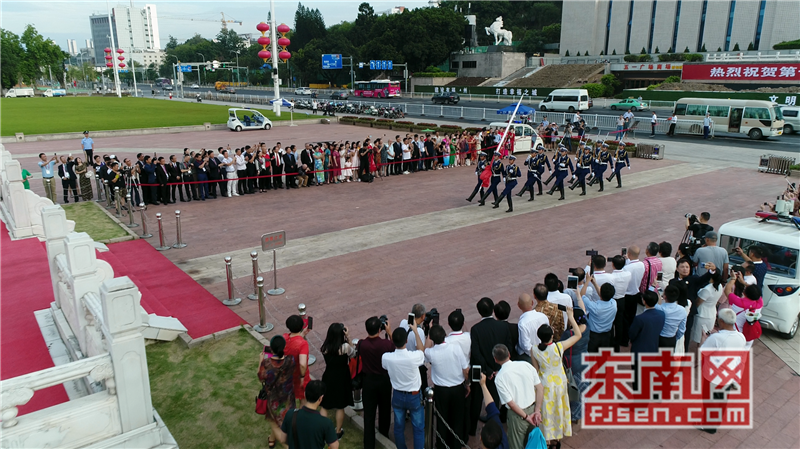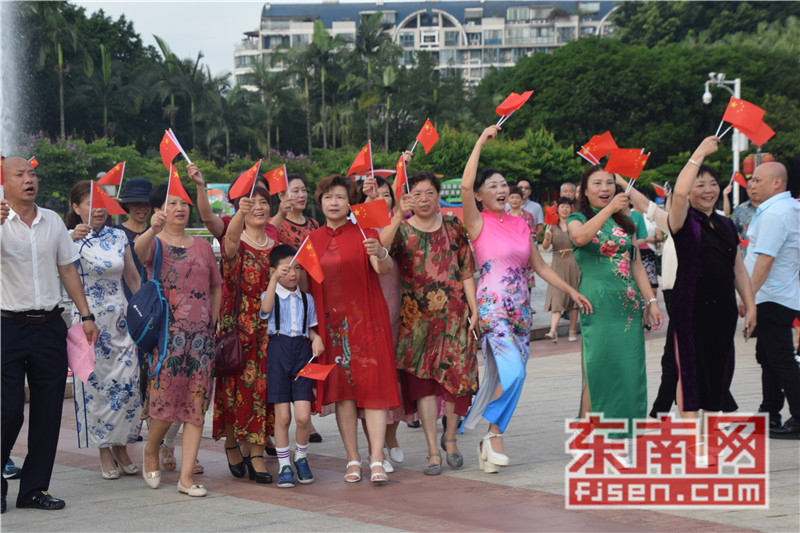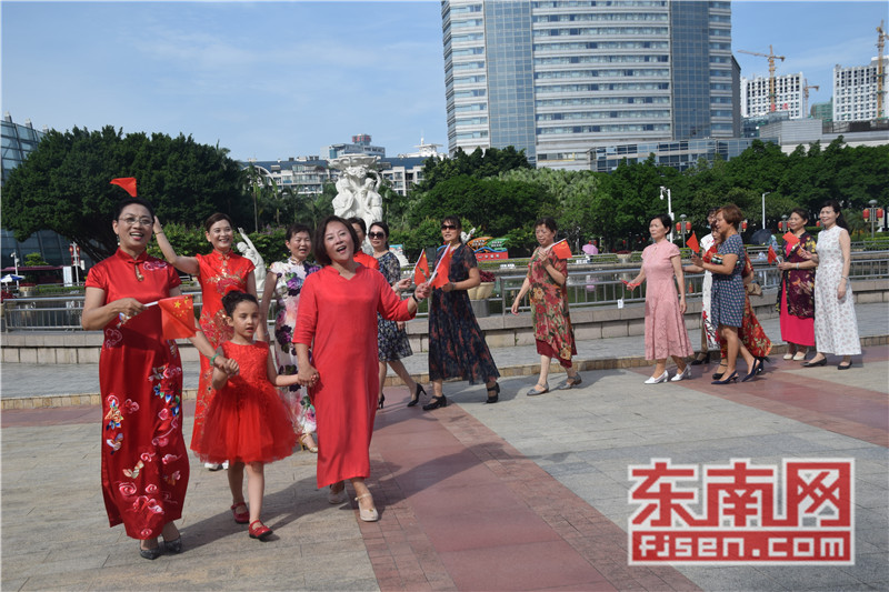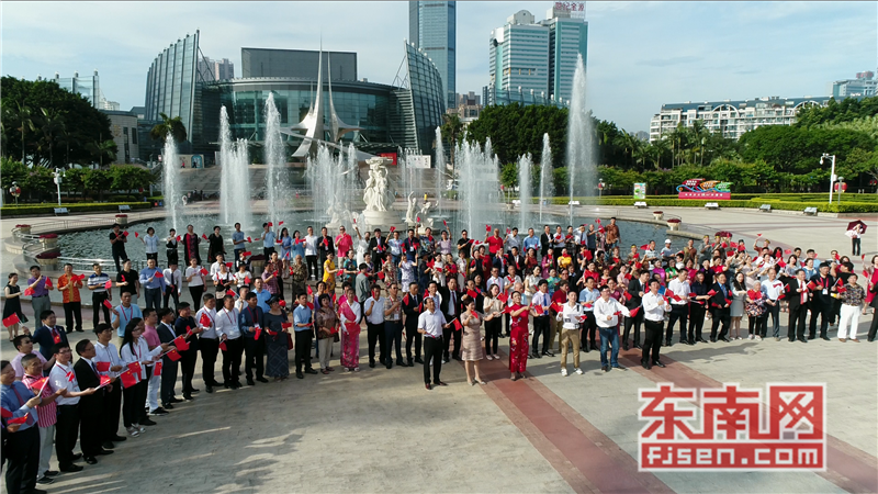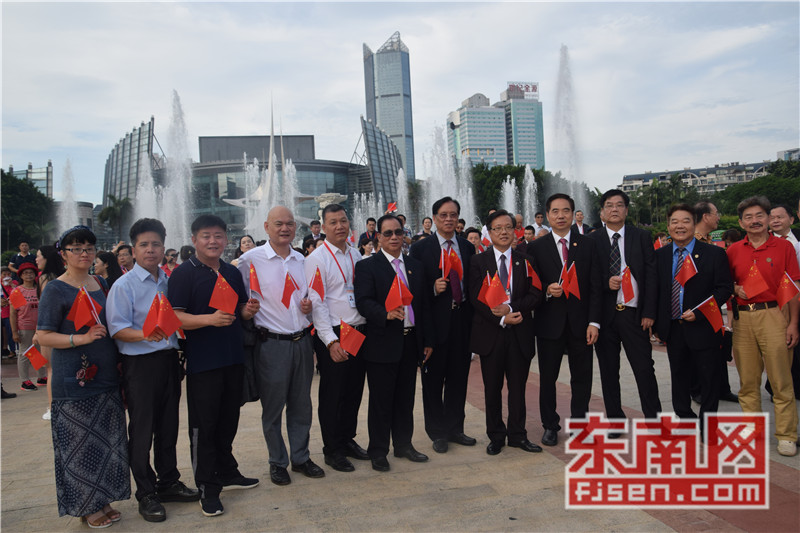 东南网6月19日讯(本网记者夏芳 陈倩 实习记者余雪林 文/图)每天清晨,福州市国旗护卫队都会护送国旗到五一广场国旗杆下,迎着第一缕阳光,伴随着国歌,将五星红旗冉冉升起。今日,来自全球5大洲70多个国家的海外侨胞、港澳同胞、归侨侨眷及现场市民近600人参加了这场肃穆庄严的奏国歌、升国旗仪式,并且在五一广场开展了一场别开生面的公益快闪活动。