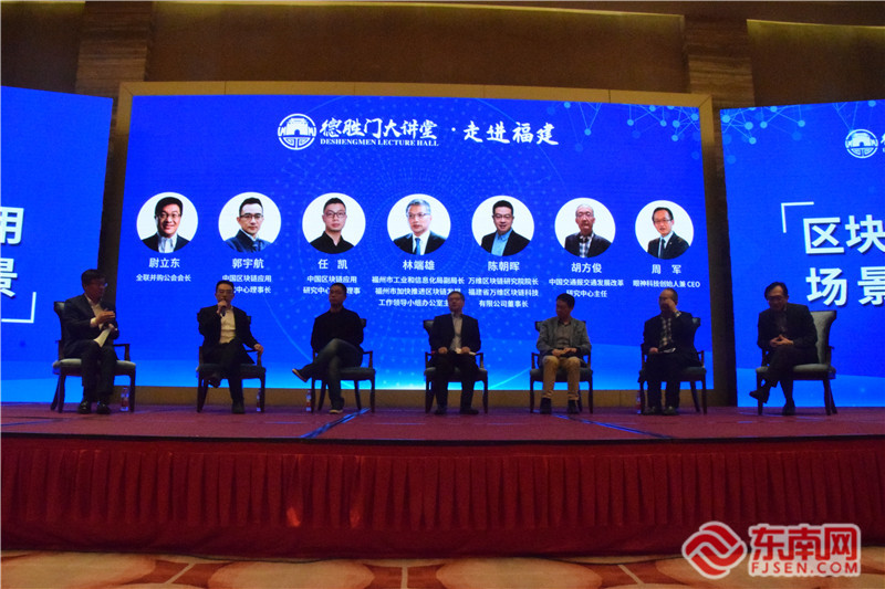 讲堂高峰对话环节,全国工商联并购公会会长尉立东带领中国区块链应用研究中心理事长郭宇航,中国区块链应用研究中心常务理事任凯,福州市工业和信息化局副局长、福州市加快推进区块链发展工作领导小组办公室主任林端雄,万维区块链研究院院长、福建省万维区块链科技有限公司董事长陈朝晖,中国交通报交通发展改革研究中心主任胡方俊,眼神科技创始人兼CEO周军,共同就“区块链技术的应用场景和产业前景”展开了交流与探讨,聚焦区块链前沿技术创新,区块链赋能实体与落地应用,深入分析了区块链技术在福建金融领域和实体经济中的应用场景和产业前景,挖掘其间的更大商业价值。
