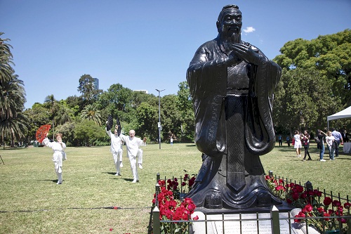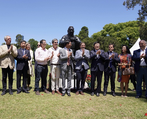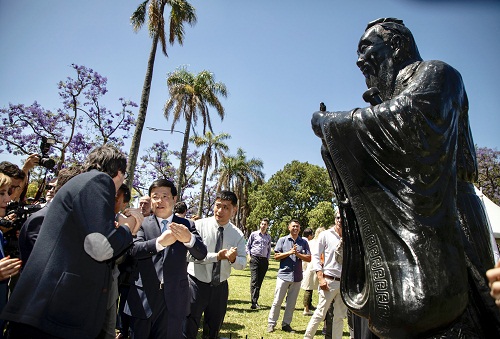 2019年11月27日,中国驻阿根廷使馆同布宜诺斯艾利斯市议会在该市“2月3日”公园联合举办孔子雕像揭幕仪式,中国驻阿根廷大使邹肖力、布市议会第一副议长福尔切利、阿众议院阿中议员友好小组主席波列多、布市政府秘书长斯特拉法塞、布市华人议员袁建平、山东黄金集团董事长陈玉民、山东省政府代表团及希腊、泰国驻阿大使、中资机构、华侨华人和留学生代表等共150余人出席活动。