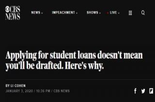美媒发布文章辟谣,解释为申请就学补助而进行过兵役登记的男生,并不意味着填下了“自愿入伍令”。图片来源:美国哥伦比亚广播公司(CBS)网站截图。
