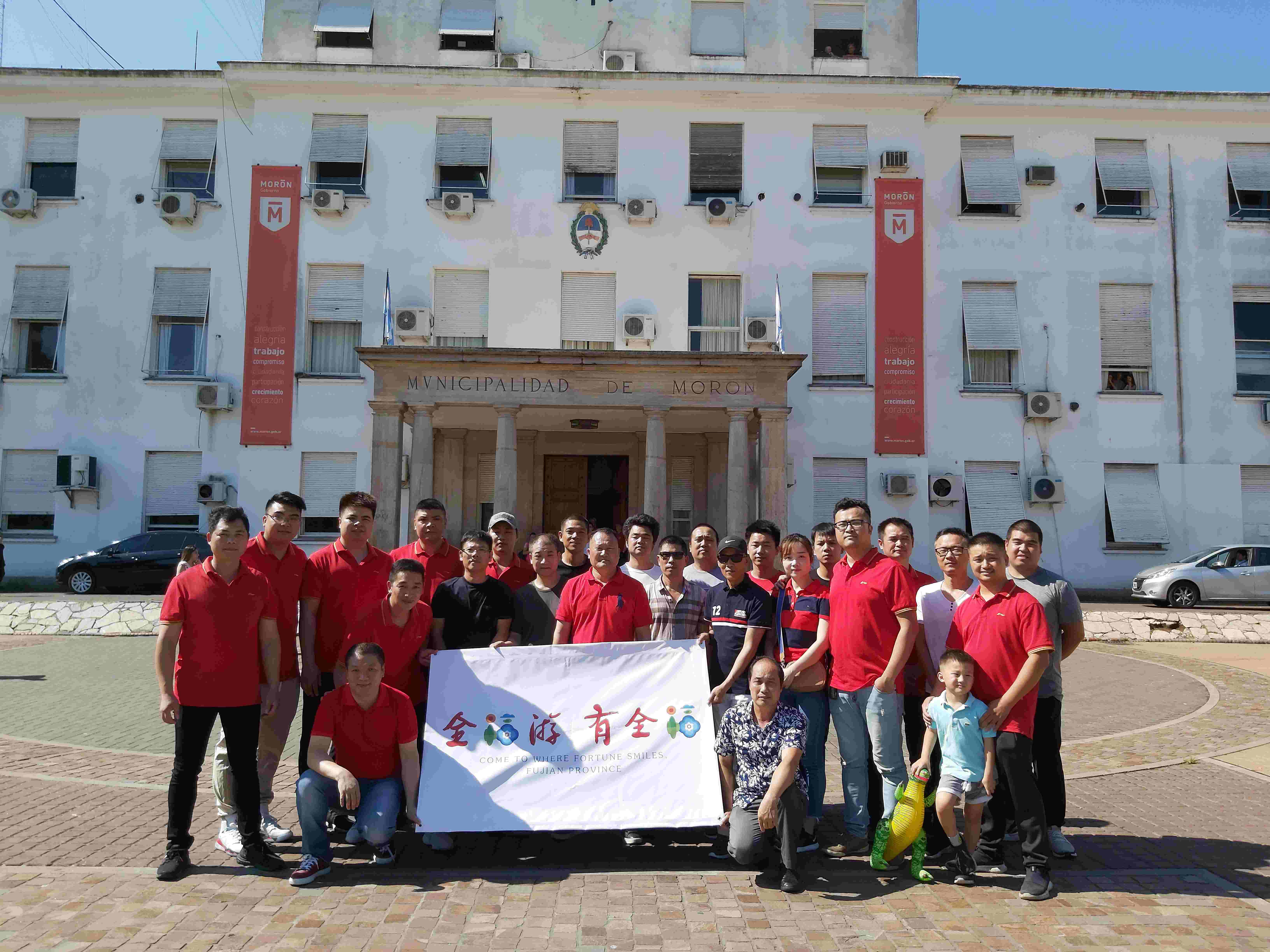 福建文化海外驿站阿根廷分站在莫龙市政府广场前向全球所有华人拜年,他们欢呼:"在阿根廷向祖国人民拜年,祝祖国更加繁荣昌盛、祝祖国乡亲新春快乐!Feliz Año! (新年快乐)"