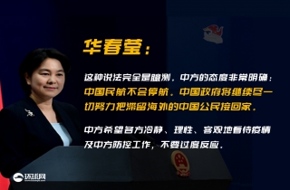 【环球时报-环球网报道】在6日举行的外交部网上记者会上,有记者问及,“有个别国家官员建议本国公民尽快离开中国,理由是担心中国将进一步采取旅行限制,未来数周难以保证搭乘商业航班飞离中国。”对此,中国外交部发言人华春莹当天回应称,这种说法完全是臆测。中方的态度非常明确:中国民航不会停航。中国政府将继续尽一切努力把滞留海外的中国公民接回家。