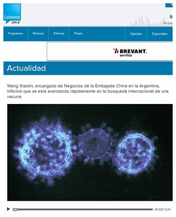 2020年2月8日,驻阿根廷使馆临时代办王晓林就新冠肺炎疫情接受阿根廷大陆电台《新闻快讯》节目直播专访,详细介绍疫情最新情况和发展趋势、中方应对措施及积极成效,并就现阶段中国民众生活、中阿防控疫情合作及人员往来情况、网络上个别歧视言论等回答记者提问。