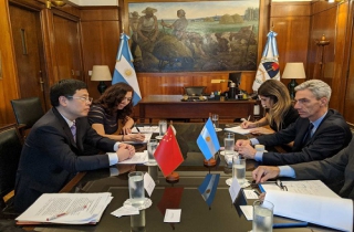 3月11日下午,驻阿根廷大使邹肖力在阿交通部会见梅奥尼部长。