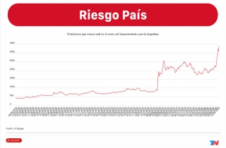 (阿根廷华人网3月16日 Andres/编译)受对新型冠状病毒的担忧以及对于阿根廷重新进行的外债谈判的怀疑,周一阿根廷国家风险指数上升了200多个基点,并在上午11点之前突破了3300个单位基点,到达了3387个单位基点。