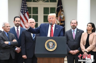 资料图:当地时间3月13日,美国总统特朗普在白宫宣布“国家紧急状态”,应对新冠肺炎疫情。 中新社记者 陈孟统 摄