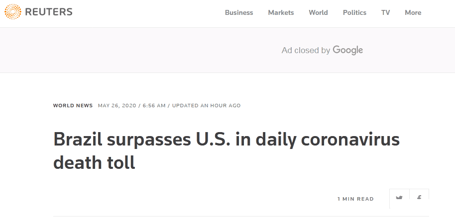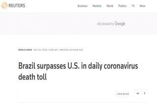 路透社介绍,在过去的24小时内,巴西有807人死亡,而美国有620人死亡。