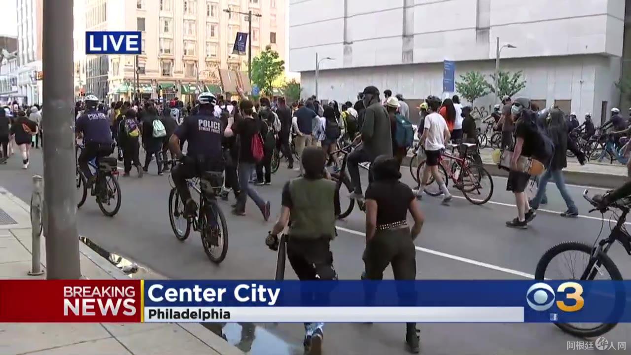▲美国费城市中心的“和平”的游行示威者。图据CBS新闻