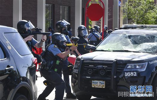5月28日,在美国圣保罗市,警察与抗议者发生冲突。新华社/美联
