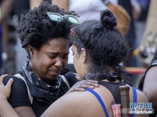 5月28日,在美国明尼阿波利斯市,抗议者集会时相互拥抱。新华社/美联