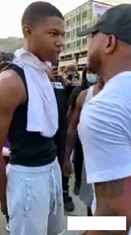 他对看起来略显懵懂的16岁少年哽咽着说,“你们要找到更好的方法!因为我们(非裔美国人)至今(在这条抗争路上),没有任何进展。4年前,我也在做同样的事情,但,什么也没能改变。”少年则沉默而认真地倾听着男子的话。