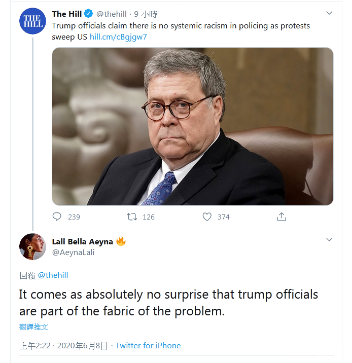 网友Lali Bella Aeyna评论说,“完全不意外,特朗普政府的官员们就是这个问题的组成部分。”↓