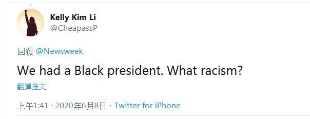 还有网友称,“我们有过一位黑人总统。哪里有种族主义?”