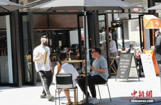 资料图:当地时间6月22日,纽约曼哈顿一家餐厅,顾客在户外用餐。当日,纽约市按预定计划进入第二阶段重启。中新社记者 廖攀 摄