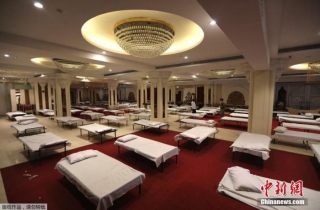 资料图:当地时间6月15日,印度新德里,宴会厅被改造为临时医院。