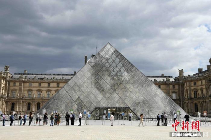 因新冠疫情沉寂了3个多月的法国卢浮宫,于当地时间7月6日重新开放,卢浮宫广场玻璃金字塔前,再次排起了长长的队伍。