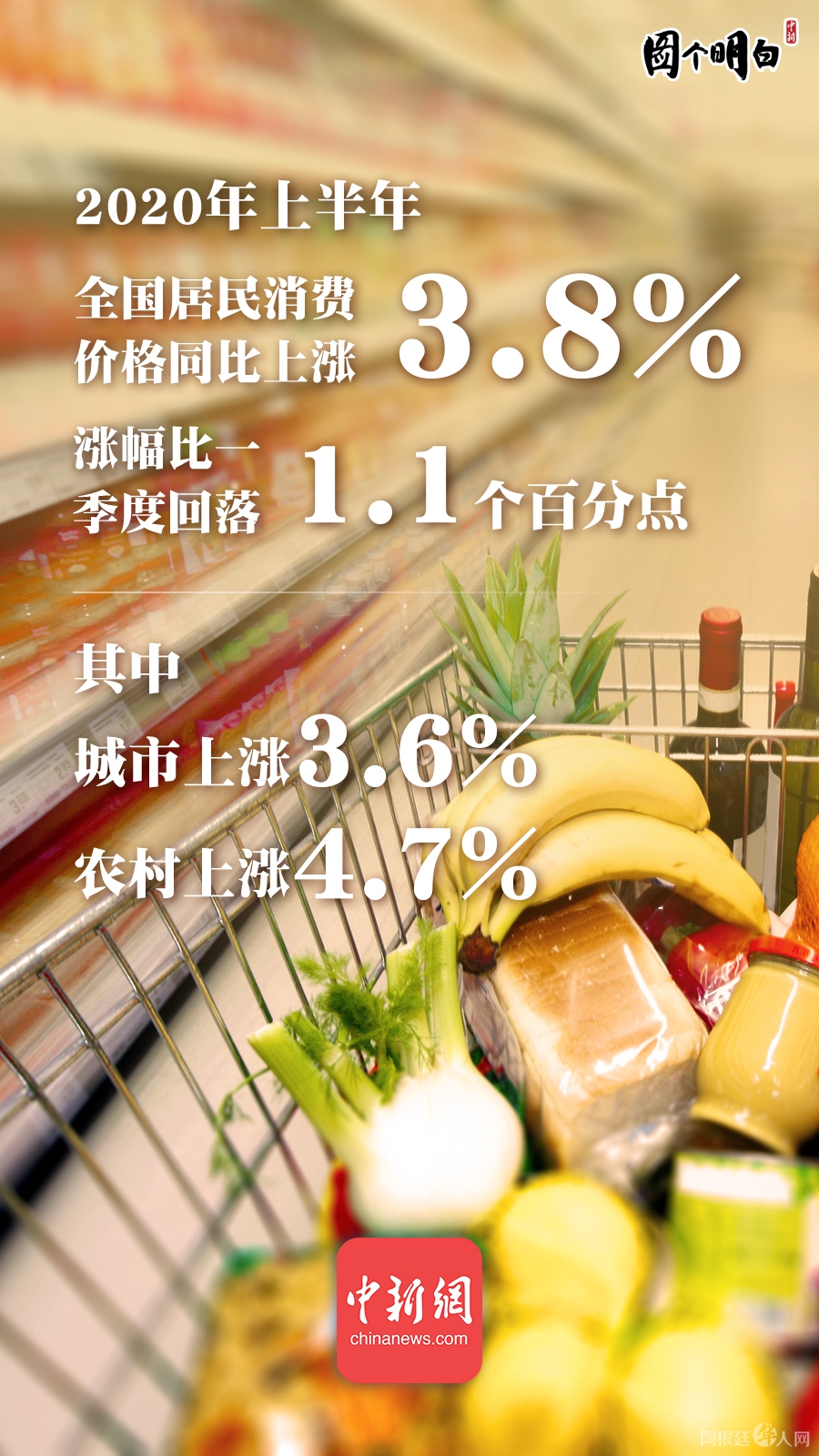 上半年,全国居民消费价格同比上涨3.8%,涨幅比一季度回落1.1个百分点。5月份CPI同比上涨2.4%,6月份CPI同比上涨2.5%,连续两个月维持“2时代”。