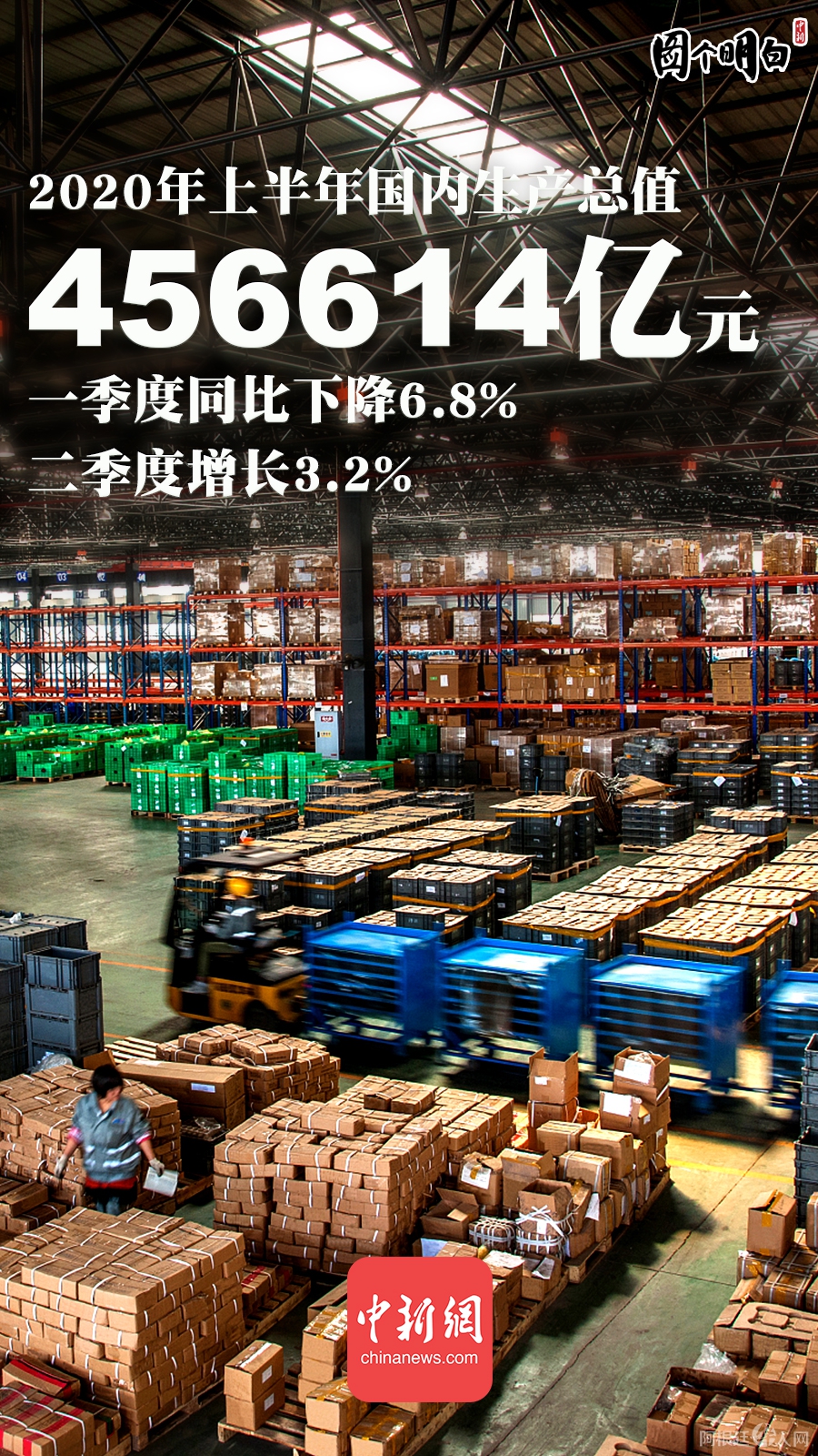 从负增长6.8%,到正增长3.2%,上半年中国经济先降后升,二季度经济增长由负转正,实现了一个从深蹲到起跳的“V”型反弹。