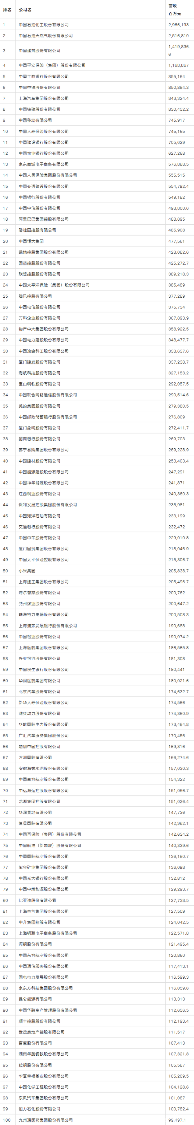 三言财经 7月27日消息,财富中文网发布最新的《财富》中国500强排行榜。今年500家上榜的中国上市公司总营业收入达到50.5万亿元,较去年增长11%;净利润达到了4.2万亿元,较去年增长超16%。