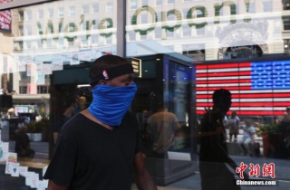 目前,美国疫情持续恶化,图为当地时间8月9日在美国纽约时代广场的行人。