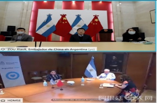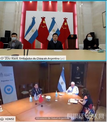 2020年10月8日,驻阿根廷大使邹肖力线上会见阿根廷卫生部长加西亚。