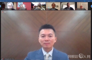 2020年10月9日,驻阿根廷使馆王晓林公参应邀参加阿根廷西北国立大学举办的“世界中的阿根廷:机遇与挑战”公共讲坛线上开幕式并致辞,重点就中阿双边关系最新进展和两国抗疫合作等作介绍。