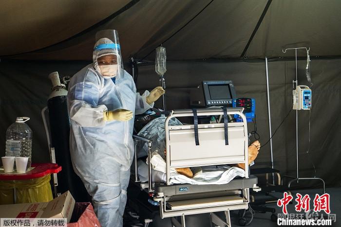 资料图:2020年7月10日,在南非一家医院内,新冠患者在接受治疗。