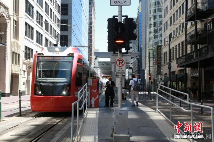 资料图:当地时间5月1日,美国得克萨斯州开始“重启”经济。图为“重启”首日,休斯敦市中心的轻轨站,乘客寥寥无几。