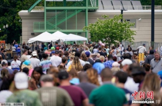 资料图:当地时间6月17日,美国肯塔基州国会大楼外,上千名在疫情期间失业的美国民众在此排队等候进入大楼。