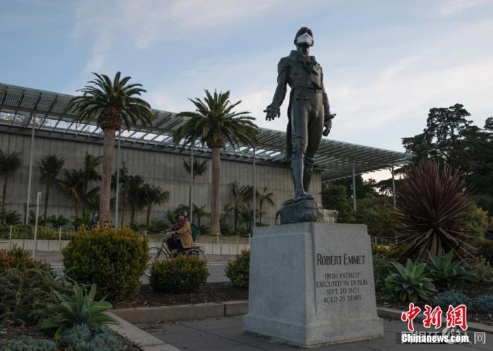 不远处,罗伯特·埃米特的雕像以及加州科学博物馆大厅里的巨型霸王龙骨架模型都被戴上了口罩。感恩节假期结束了,而博物馆的工作人员却可以放假了。进入“紫色”层级之后,这家博物馆和对面的笛洋美术馆都难逃暂时关闭的命运。