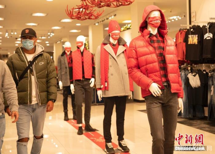 为了分流顾客,旧金山的梅西百货也早早开始了“黑五”打折活动。21日,记者在梅西百货看到,商场里随处可见的“黑五”促销广告与往年并无二致。不过,排成一队的塑料模特脸上整齐划一的口罩,也成为这个购物季的“非常”之处。