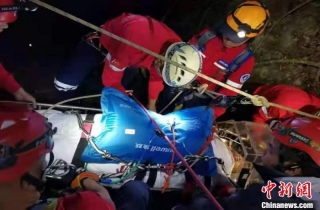 救援队员合力搜寻到坠崖伤者并施以救援。现场医生检查后,发现伤者鼻孔出血,失禁,疑似颅脑有损伤,情况较危重。救援队当即给其输氧,并用担架把伤员转运下山。为了安全转运伤员,救援队架设路绳,搭建担架转运系统,采用人工接力方式运送伤员下撤。30日凌晨0点40分,伤员被运送至山脚救护车处。