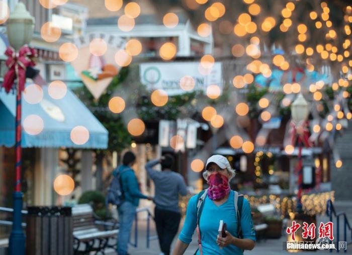 当地时间12月7日,美国加州旧金山市民佩戴口罩出行。中新社记者 刘关关 摄