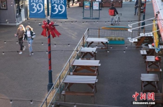 当地时间12月7日,美国加州旧金山渔人码头一家餐厅停止提供户外就餐服务。中新社记者 刘关关 摄