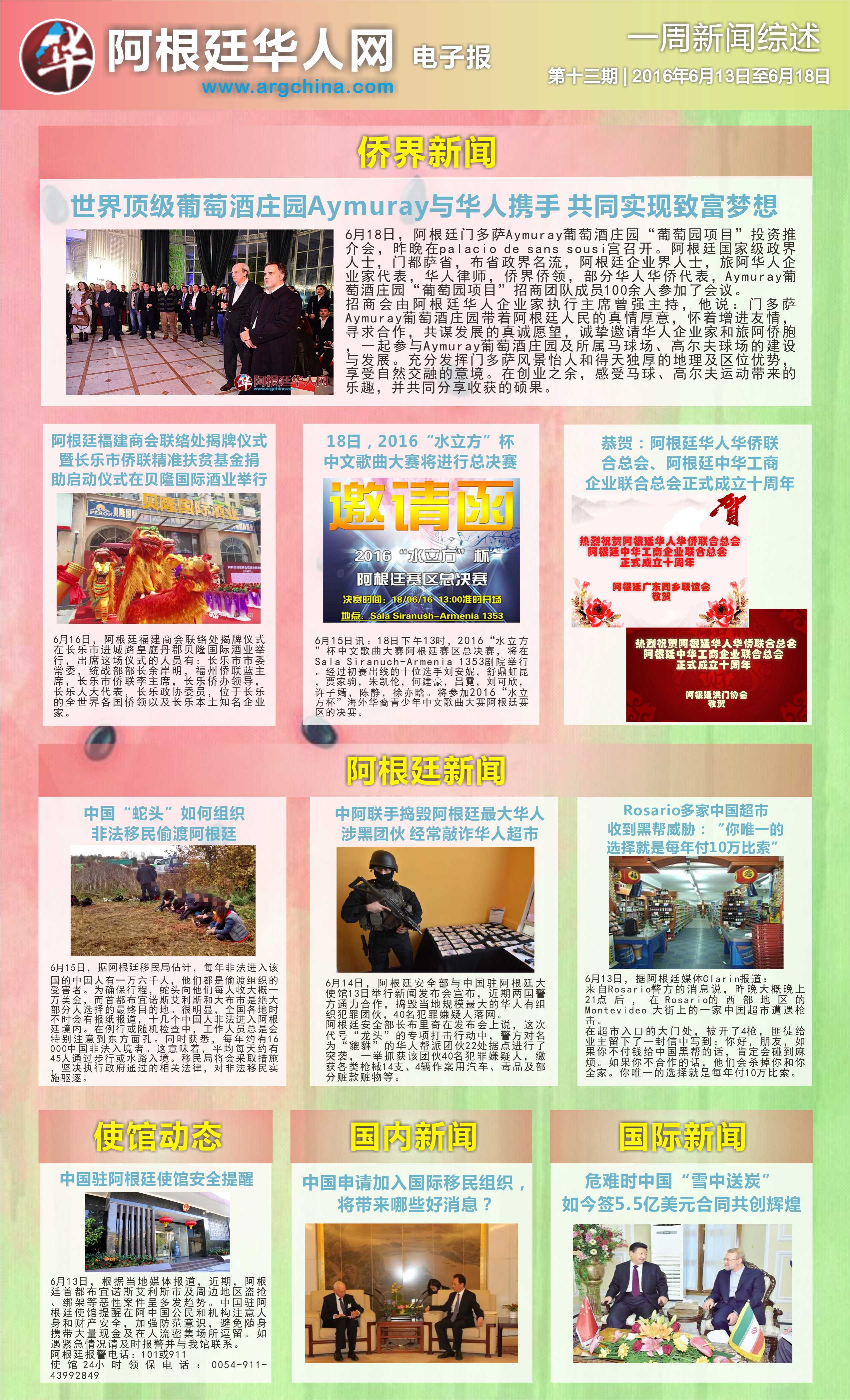 《阿根廷华人网电子报》第十三期 侨界新闻 • 2016-06-18 12:27• 收藏本文 cVE阿根廷华人网 转载本网稿件,原则上需要书面授权,不得篡改稿件主题。本网随时有权要求第三方停止侵权行为。 本网所载内容或图片,若涉及侵权,请联系删除。 18 ___________ 2016/06 《阿根廷华人网电子报》第十三期 cVE阿根廷华人网 [ 微信长按识别二维码或扫码查看分享内容 ]